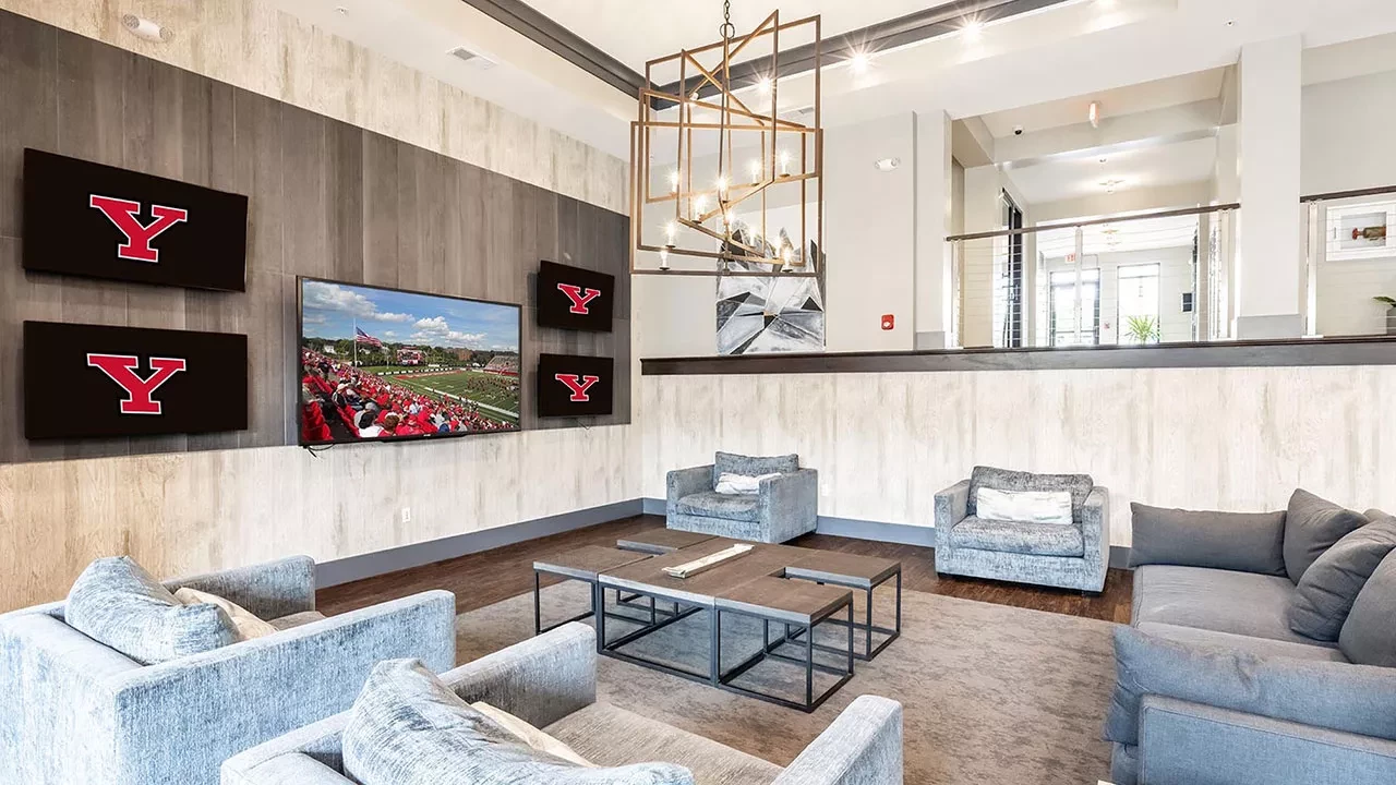 University Edge Youngstown offers off-campus student housing conveniently located in Youngstown, Ohio. Situated just steps away from Youngstown State University and less than a mile from downtown Youngstown, our apartments provide the ideal living space for students and young professionals alike. With shops, restaurants, and entertainment options within walking distance, residents can easily access everything they need. Additionally, the YSU Morning Express shuttle stop is located right outside Lincoln Ave and Elm Street, offering students convenient transportation to campus. Our off-campus apartments feature fully furnished 1, 2, 3, 4, and 5-bedroom floor plans to suit your needs. Each apartment includes private bathrooms in every bedroom, complimentary internet and cable services, an appliance package, a breakfast bar with seating, and a full-size washer and dryer for added convenience.